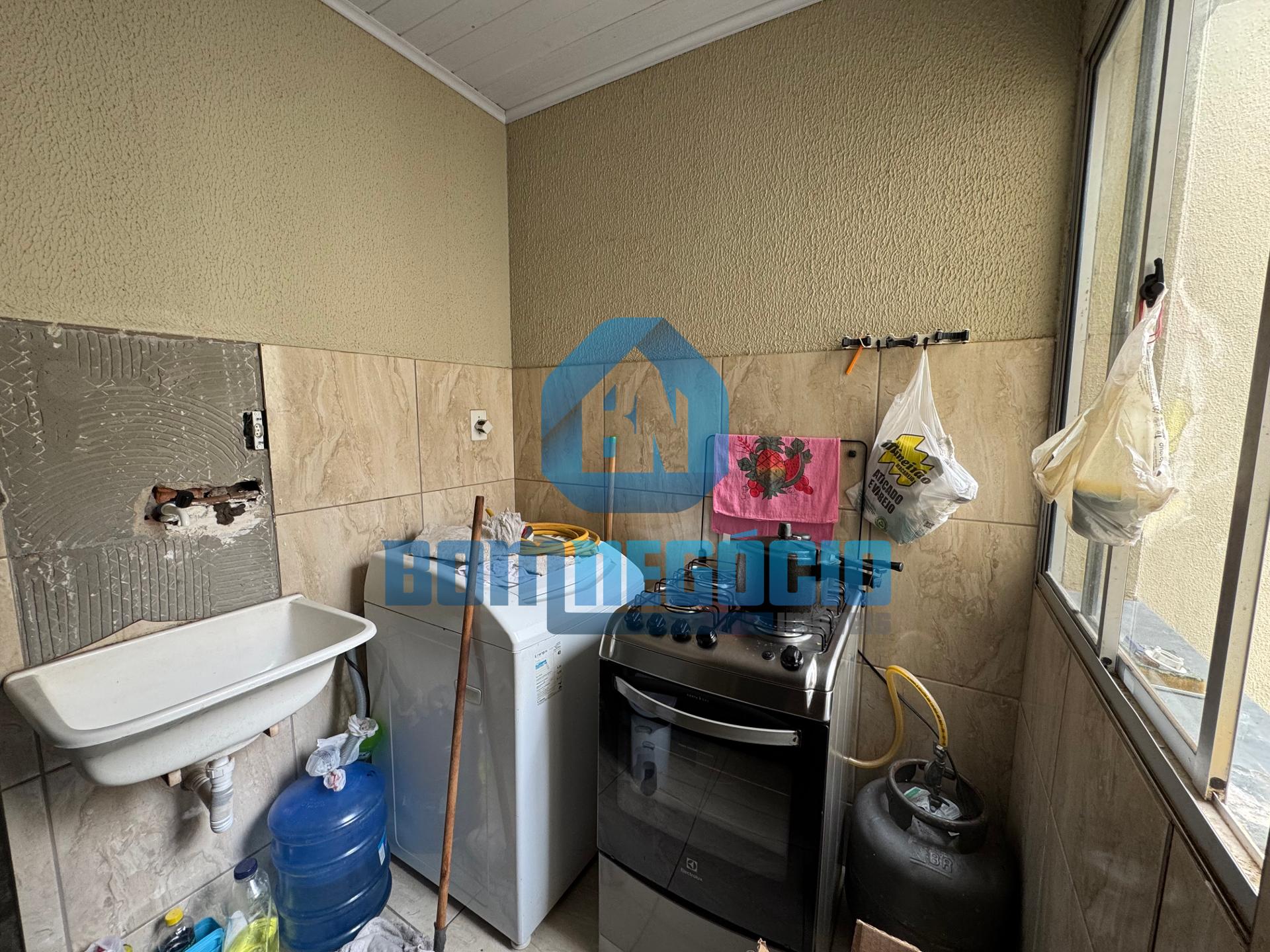 Cozinha semi revestida, com ótimo espaço para armários