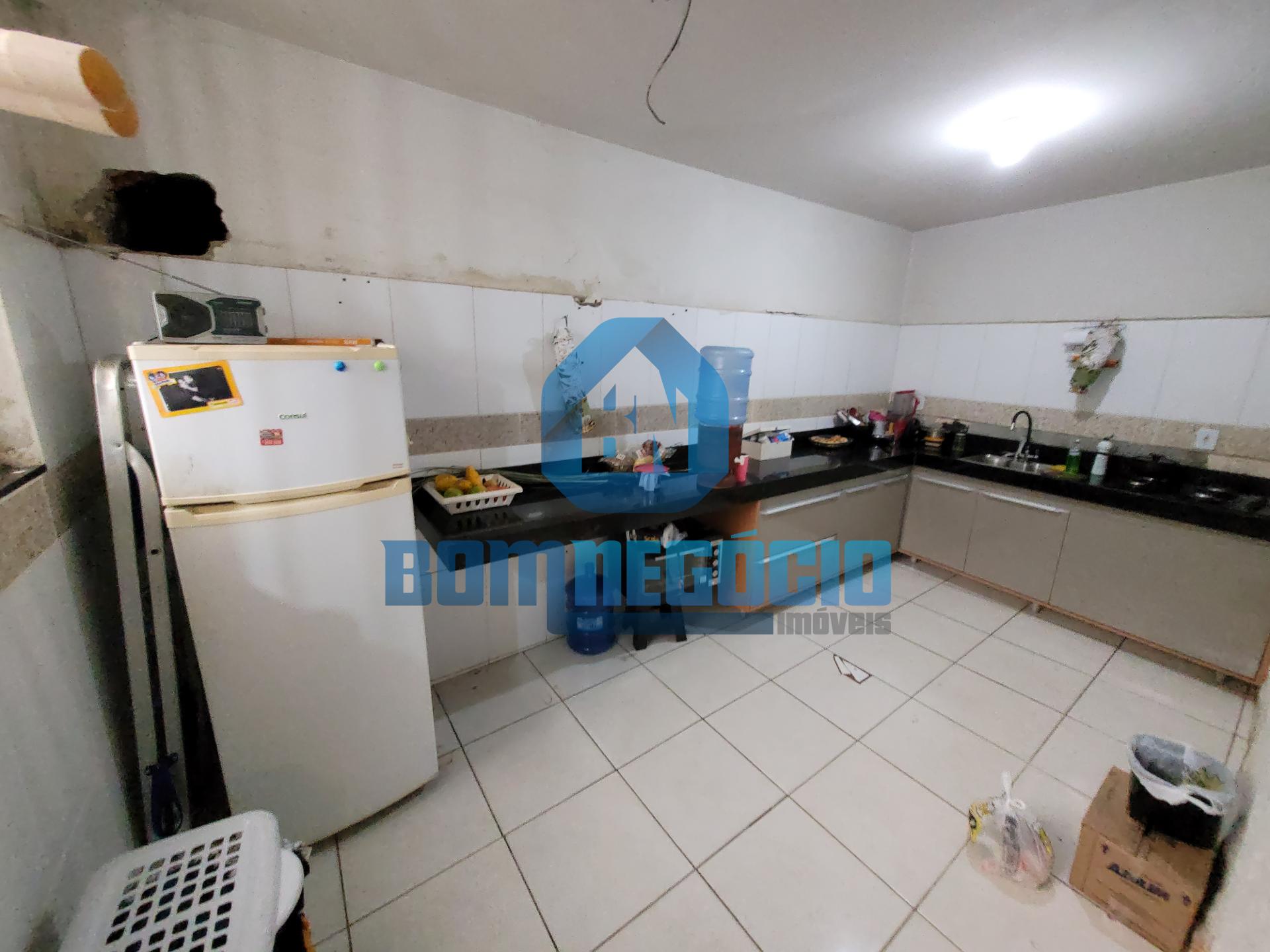 Cozinha ampla, semi revestida, com móveis planejados