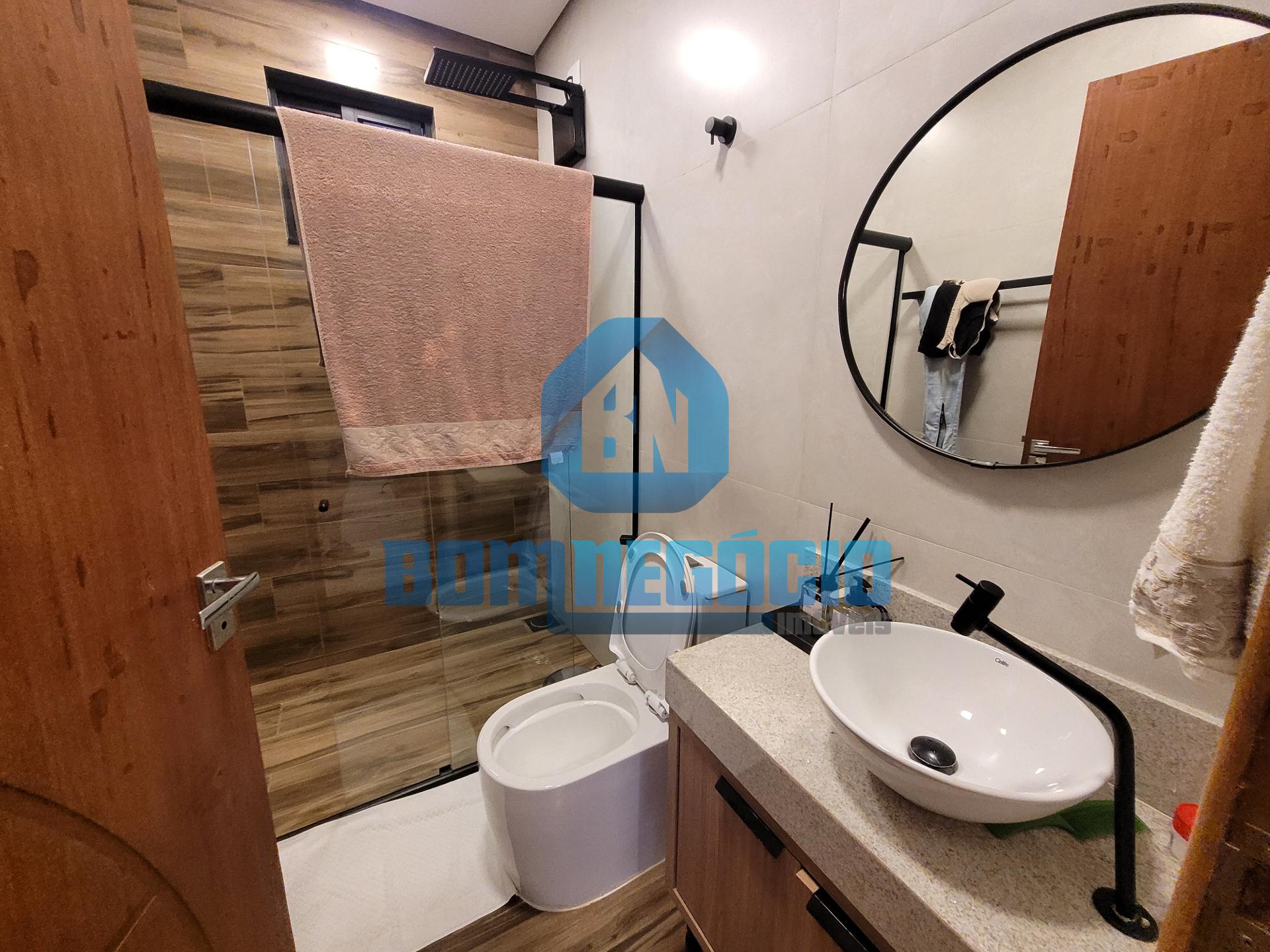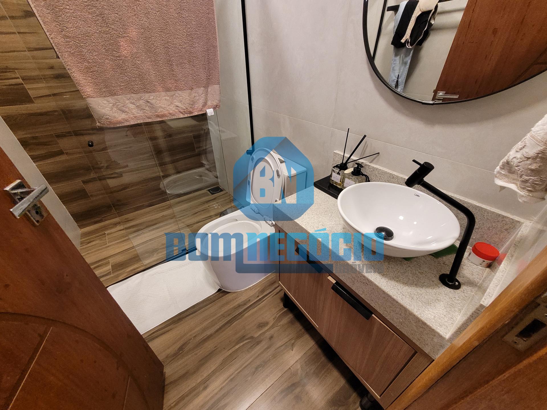 Dois banheiros sociais com box em vidro blindex e espelhos já instalados